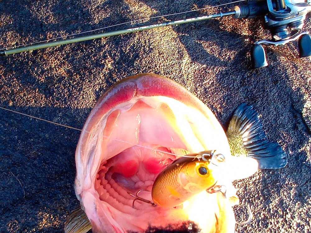 11月は2回程釣りに行きましたが坊主をくらい、行く時が無かったので冷え込んでから行こうと思ってこのタイミングになった今回でした。着いた当初は雨が降っていましたが、直ぐに止み晴れてきました。風も少し優しくなりキャストしてもラインが持っていかれない程に。魚が居そうなポイントにスラローマー85やChunkのゆっくり目に浮き上がるよう板重りを付けた物を通して見ましたが何も無く、次なる良さそうなコースをぐりぐり巻き。沈みこませてからゆっくり巻いているとビビビッ、ギュルギュルーと出ていくライン。ありがとうバス君。次を期待し少し移動するも痛恨のルアーロスト。辺りが暗くなり、深追いをせず帰宅しました。また年内行ってみます。