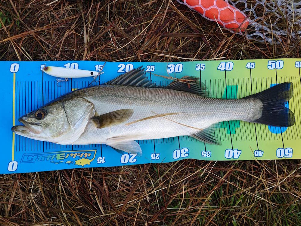 霞水系のシーバスがほぼ季節的に終わりの兆しが見えた為、シーズン最盛期に差し掛かる涸沼へサムルアーズチャレンジに行ってきました。関東のランカーシーバスの聖地と言われる涸沼。朝夕マヅメ時のイナッコを狙ったボイル撃ちが基本。ボイル連発の場面はチャンスが高いと共にいかにシーバスに口を使わすかがゲーム性を高くしています。追われているイナッコのサイズがファットサムパワースライドとほぼ同じなのを確認。すかさずボイル撃ちをすると見事水面を割ってくれました。やはり海が近いのと回遊シーバスなので霞水系シーバスとはまた魚体も性格も違うようです。