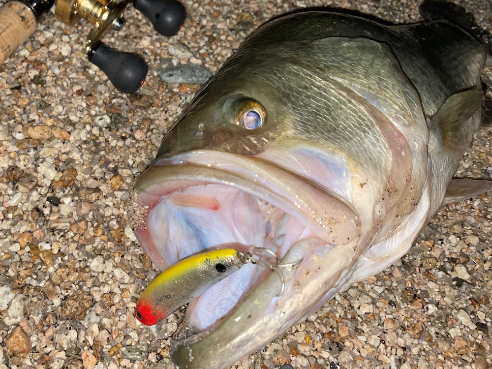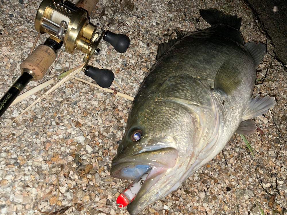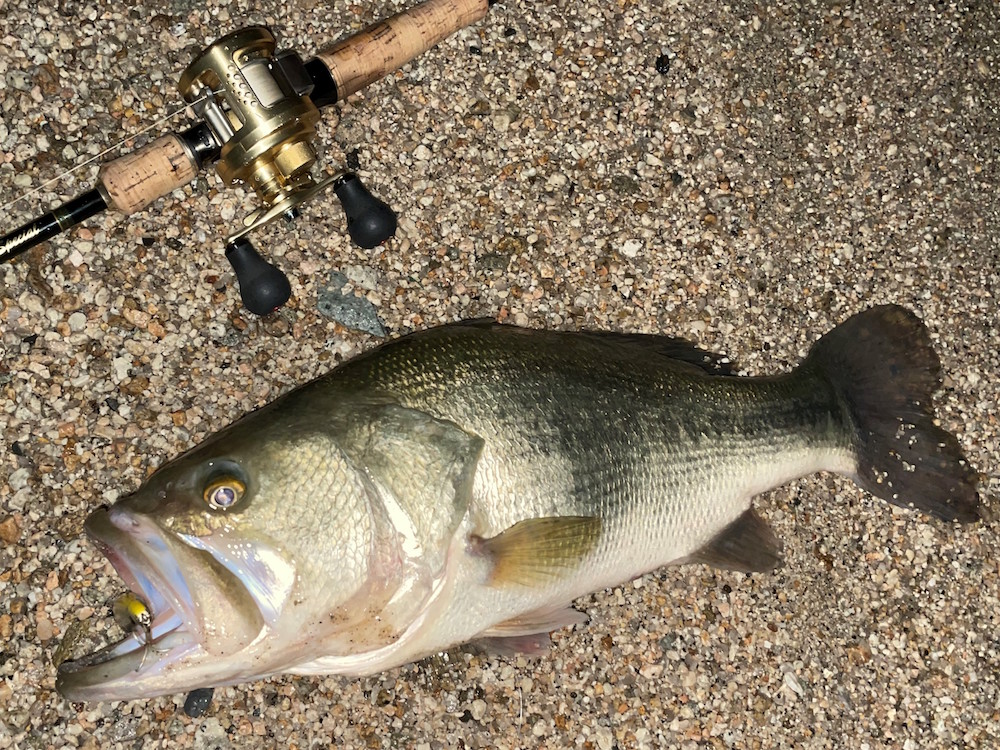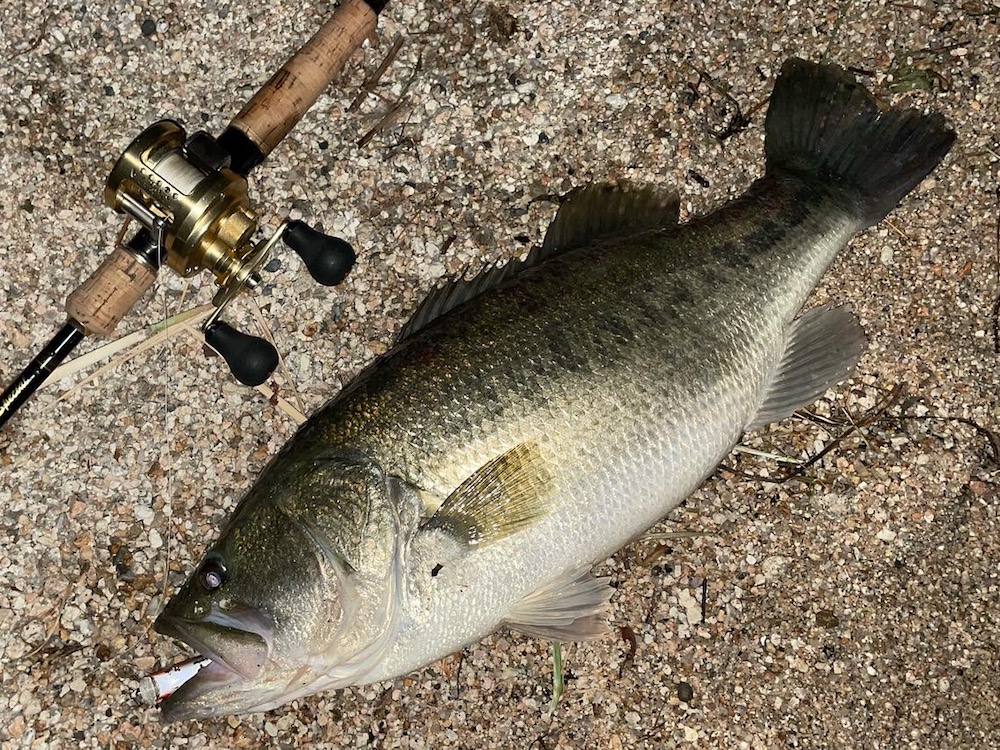 見事2匹の大型の釣果、流石です。いつもとは行きませんがこれから季節の夜、静かに岸際を見ていると時々沖のウイードから岸際のアユを狙って突撃して来るバスの動きを感じ、釣れる釣れないは別として興奮してきますね。この夜はどうだったのか知りませんが僕の最も好きな夜です。ありがとうございました。