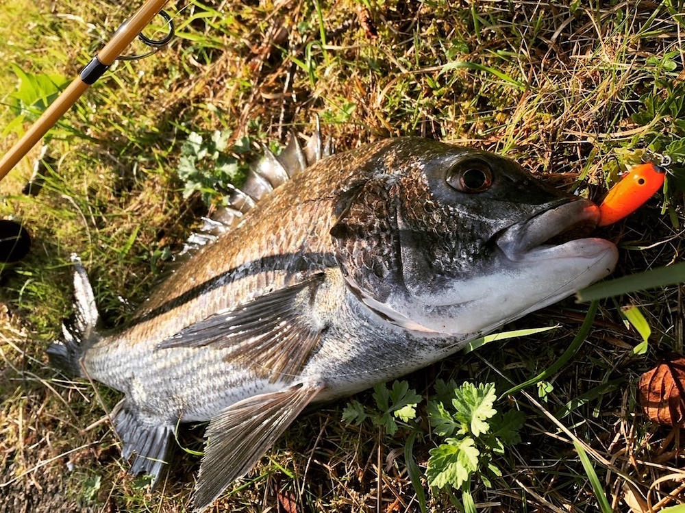 三重県に旅行のついでに見つけた場所で釣りをしてみました。数匹の見えチヌ、ボラがウロウロとしていました。FB65,プロップドロップを投げるもあたりはフグばかり。フランクサム、ファットサムjrに変えるも反応なし。諦めて場所を変えてみるとそこにもチヌが2匹ほどいました。トップウォーターへの反応はいまいちだったので今度はプロップドロップブレードを投げてみました。するとまさかのすぐ反応が!釣れたのはよく引く50cmのチヌでした。とても嬉しかったし、良い思い出になりました。日本海でもプロップドロップブレードを試してみたいと思います。