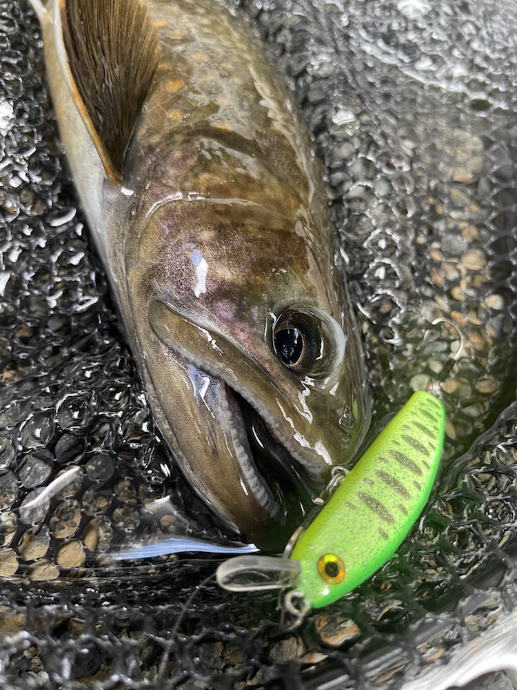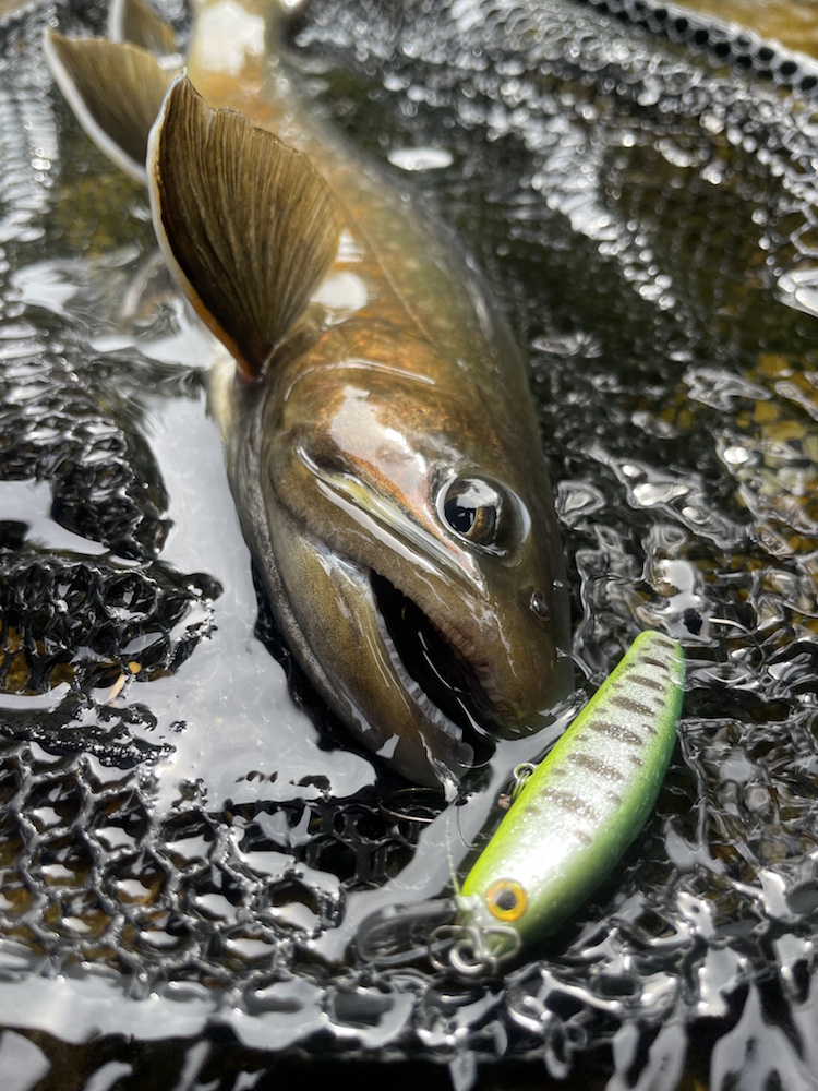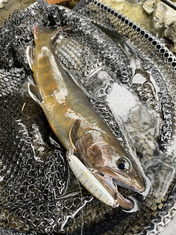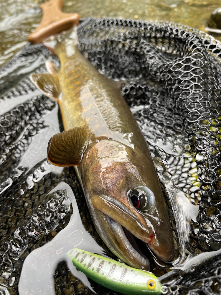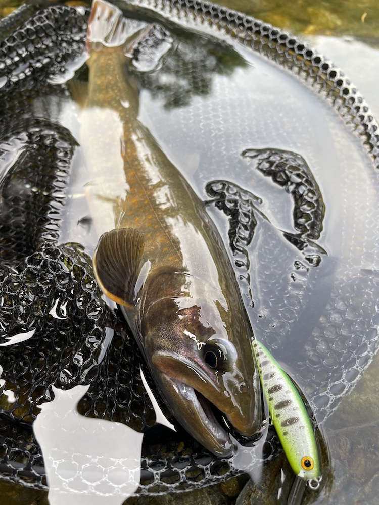 今シーズン最盛期は色々あって何も出来なかった。このまま終わるのかと思っていたが最後の最後に間に合った。目的地は今年こそ行ってみようと計画していた聖地的なフィールド。初日はひたすら登山のみで渓を見ながら小一時間ほど釣ってみたがそこそこの手応えを確認。山中に宿泊し翌朝本命区間へ向かう。30分くらいかけて谷を降り釣りを始める。このシーズンはかなりスレているため大場所や分かり易いポイントからは反応はない。まずは得意のスモールスペース&シャローの釣りで打ち登る。すると初投から反応あり。サイトでバイトに持ち込み無事にキャッチした魚は今回の目的魚としていたヤマトイワナ。噂通り美しい。開始早々で目標は達成された。しかしまだ始まったばかり。いろいろなアプローチでパターン探す。どうやら落ち込みやブラインドといった定番ポイントではなく長めのストレッチの岸際に魚は付いている。アプローチはアップのみ。さらにディスタンスを取らないと魚は出てこない。また背に太陽がある場所ではほぼ反応しない。パターンさえ判れば後は再現。同様のロケーションで魚キャッチしながら2時間ほどで退渓地点の大堰堤に到達。個人的に苦手な大場所。ど真ん中は打たずにエッジの瀬尻を打つと大型のチェイス。上手くバイトに持ち込み締めの尺イワナをキャッチ。下山のスケジュールを考慮しこれにて終了とする。残念ながら大型ヤマトを数匹バラしたり魚のフィーディングレーンやアプローチを見誤ったり、かなり勉強となった楽しい釣行だった。源流は素晴らしい経験ができますが最近はブームでアングラーも多く難易度は高めです。是非とも万全の体調と装備でこのゲームにチャレンジして頂きたいと思います。今シーズンは不完全燃焼であったが最後によい経験ができて本当によかった。来年もぜひ訪れてみようと思います。