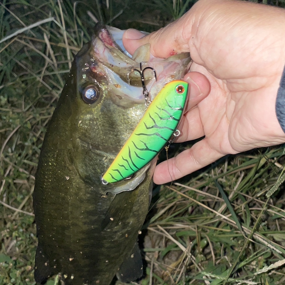 只今減水中の養老水系で、サムバイブ75Fで良い思いが出来たのでリポートします。夕方前から陸っぱりで釣り開始するも、大減水の影響で、皆さん全く釣れていない状況のようでしたが、日没近くなって時折り魚がシャローに差して来るようになってきたので、かけ上がり付近を岸と並行になるようにサムバイブ75Fを通すと、ゴロタや崩れた土管などの障害物付近を通過するタイミングでバイト! グッドコンディションの40アップを筆頭に短時間で4匹釣ることが出来ました。同じ場所で、トップも引き倒しましたが、全然反応しなかったので、恐らく水面直下をスロー&ナチュラルに引くのが吉だったのでしょう。晩秋まではこの釣りで楽しめそうです!