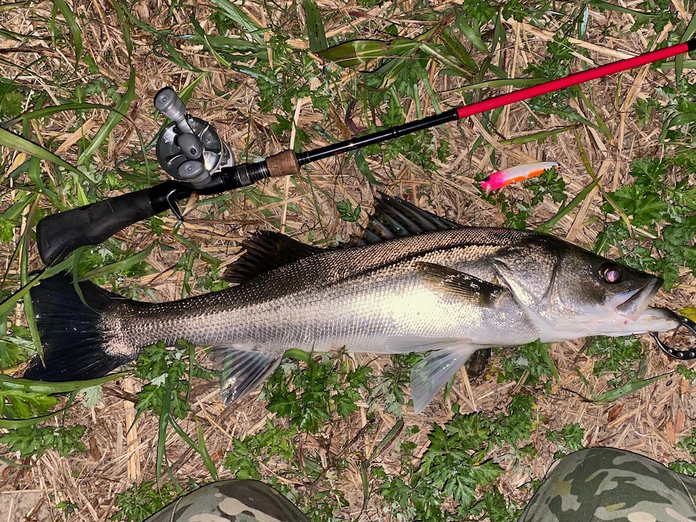 ここ数日、ヘッドライトがいらないほどの月明かりと、大減水と、ベタ凪でバイトすらなしが続いてました。こう言う時はポイントのローティションでドツボにハマるより、いっそ新開拓でスレてないフレッシな魚を探す事にしました。まず地図で地形と睨めっこし、日中に現場視察、そして理想的な場所を突き止めて、ナイトで実釣開始!!お気に入りだが、すこしボロボロになってきたド派手餌のコトカスミディアムを投げると、答えは早かった!3投目にメガトンバイト!しかし乗らず!5投目にも出るが一瞬だけ重くなっただけ。しばらく投げるとまたメガトンバイトで出てランディング成功!その後も一本追加しましたが、フックが甘かったせいか取り込む寸前で2本バラす、フックを新調すれば良かったと後悔はあるも、自分で探したポイント、しかも初場所で釣れた事がとても嬉しい!誰も叩かない場所なのもあって出方も素晴らしかった!残りもあと1ヶ月、頑張ってこう!