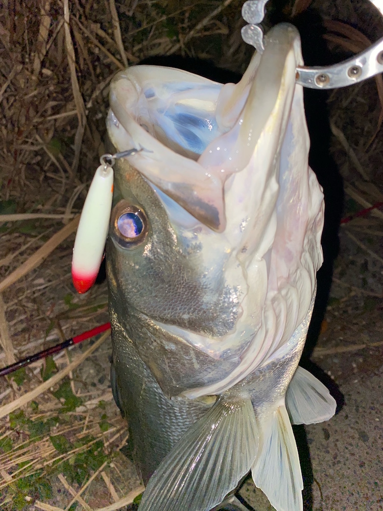 いきなり寒くなって防寒着だしました。毎日叩くと流石にスレ気味なので、本日はちょっと遠投で沖を狙ってみようと、はなからスラローマー85SSSをセレクト。自分んとこ、沖はブレイクあるも手前はドシャロー、デッドスローは根掛かりするのであまり使用しませんでした。6対1ギア比のリールに換え、ロッドを立てて、引き波がたったり、たたなかったりの強弱リトリーブを感覚で巻きながら手返しよく、テンポよく、広範囲に撃っていく。スラローマー85はベイドタックルでも気持ちよくぶっ飛ぶ!そしてドッカン出ました!いいとこバッチリ掛かって無事ランディング成功!東京湾シーバスや鹿島サーフフラットでも言えますが、魚も届かない場所にいるのでしょうかね!あそこはチクッとするから、みんな沖へ避難しましょう‥こんな感じ?元祖シンペンのサムルアーズで釣ったのも、また嬉しい限りです!ちなみに私流のコトカスミディアム(コトミ)とフラッシュバック(フラバ)の使い分けですが、リトリーブスピードで潜る、浮くの真反対の動きの違いで攻め方にバリエーションを持たせてます。