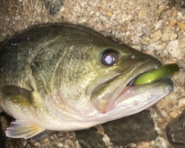 夜に天気予報を観ていたところ、先週と同じように今週末も荒れ模様になる様子。「また前回と同じような状況で魚が釣れないかな?」と、“2匹目のどじょう”⁉︎を期待して、琵琶湖へ釣行して参りました。23時頃に釣り場に着くと、予想に反して美しい星空に無風,ベタ凪の穏やかなお天気。「これは当てが外れたなぁ」と、少しがっかりしましたが、夜空に輝く北斗七星を眺めながら、以前に釣り友くんに教えてもらったオリオン座をはじめとした、おうし座,ふたご座,こいぬ座などの冬の星座を探しつつ、のんびりと浜を釣り歩きます。そうして釣りを続けていましたが、やはりバスからの反応がありません。投げるルアーも前回に味を占めて⁉︎同じチャンクのクロームライム。「やっぱりこの状況では、僕の腕では難しいなぁ〜」と、早々に釣果を諦めて、ポイント観察に重点を置いて浜を散策しておりました。そうこうしているうちに、時間は夜中の1時になり、もう今回の釣りを終えようかと考えていたところ。にわかに空が真っ暗になり、南東より強い風が湖畔に吹きつけ、雨がパラパラと落ちてきて、湖面には白波が立ち出しました。「これは前回と全く同じ状況になってきたぞ⁈もしかはしたら又釣れるかもしれない?」と、半信半疑ながら淡い期待を。釣り場が波風でかなり荒れて来たので、ルアーは先と同じチャンクですが、ウエイトを前回のクロームライムより少し重めに調整してあるワカサギイエローベリーのモデルへチェンジ。ルアーチェンジしたその数投目でした!またしても『カツっ⁈』と硬質なアタリが⁉︎「マジか〜⁉︎本当に(魚が)来たぞ⁈」と、自分でもびっくりしながらファイト開始。今回もめちゃくちゃ緊張しながら魚とやり取りをしますが、前回よりも重く、よりトルクフルな引きです。「これは、前の魚より確実に大きいサイズだな⁉︎」と、ますます焦りながら魚との駆け引き?を続けます。いよいよ岸際に魚が近づいてくると『ドボン‼︎バシャン‼︎』と、重々しい“エラ洗い”を何度も繰り返されます。「頼む!頼む!今回もなんとか釣らせてくれ〜‼︎」と、またまた“あたふた”しながらも、サムスティック“ライトトリップ”の粘りとトルクのおかげで、無事に魚を岸に上げることができました。岸に打ち上げられたバスの太くて厚みのある下あごをガッチリと掴んだ瞬間。「やった〜‼︎チャンクでまたやったぞ‼︎」と、思わず少し声が出てしまいました。サイズを計測すると、前回より少しだけサイズアップして、54㎝でした。しかしながら、魚体を見てみると、体型は餌をしっかり食べているようなガッチリした感じでしたが、全身,体表に傷やできものが有り、「傷だらけやのに、可哀そうなことしたな〜。ごめんやったね〜」と、少し魚に対して申し訳ない気持ちになりました。釣りは楽しいですし、大きなサイズの魚が釣れてくれると嬉しいですが、願わくば、健康で美しくてコンディションの良い“健やかな”個体に出逢えたら最高ですね。何はともあれ⁈前回に続いて、今回も最近“使い方模索中”のチャンクで魚を手にできたことは、本当に嬉しかったです。もうすぐ?ラトル入りの『ラトリン・チャンク』が発売されるようですが、こちらのモデルは、より広くサーチできたり(ラトルの効果で広範囲から魚を呼び寄せたり)、荒れた天候の中でもしっかりと魚にアピールしてくれそうで、リリースが待ち遠しい限りです!