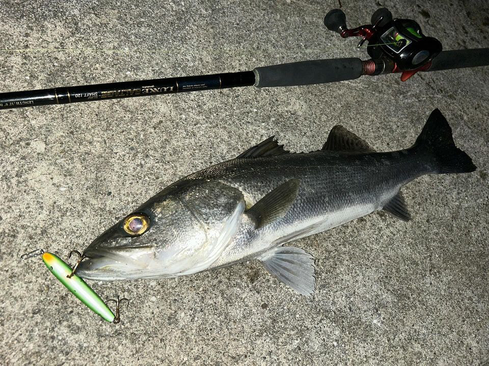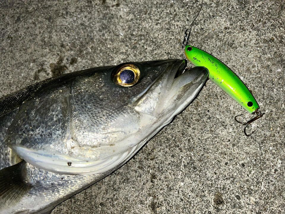 おはようございます。出勤前にサッと竿を出せるポイントでの釣果です。大荒れで奥まった石積みの際までウネリが入っている状態です。こんな日に魚が着くのは石積みの下なので迷わず石積みと平行になるようにルアーをキャストします。居ればどんなルアーでも食いそうですが、過去実績があるのはリップレスタイプのミノーなので、スラローマー85を選択。着水して数回リールのハンドルを巻いたところで食ってきました。60センチの居着きタイプの魚でした。現在はスズキは産卵期ということもあり、数もサイズも期待はできないのですが、それでも状況を読めばなんとかなる場合もありますね。