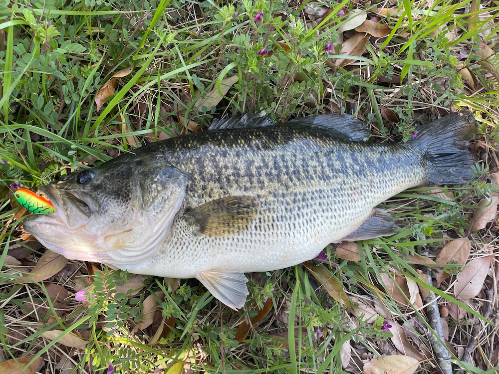 足の裏の様子がおかしい、これはちょっとヤバいかもしれんと思ったらしいバッチリ的中。2019年から色々ネットで調べて治療して、数年を経てヨタヨタ歩ける様になって出掛けてみたら釣れてしまいました。昼前に着いておにぎり食べてコケン様(転ばない様に)に2箇所投げて見たがノーバイト、狙いの3ヶ所目が上手く空いていて5投目位に横から猛烈に丸飲みの感じで食いついてくれました。釣れたのは12時過ぎです。数年ぶりにしては出来過ぎでした。濁って駄目かもしれませんが連休明けにアフター混じりで同じ所で、お前はアホかと思われるかもしれませんが連発してみたいと思っています。これで釣ったのかと思うルアーで、誰でも釣れる投げて巻くだけ。