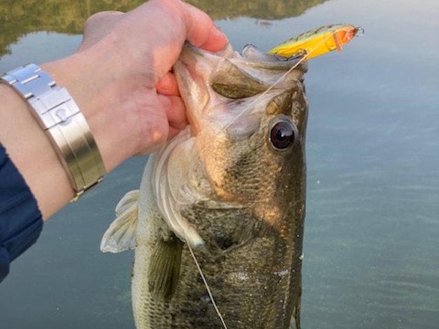 いつもお世話になっています。初バスから中3回坊主を喰らいひと月ちょっとかけてやっと2匹目をゲットしました。今回どうしても釣りたいルアーでゲット出来たので達成感がハンパないです。いつもの内湖ですが、さすがにGW、人も多くかなりハイプレッシャーでした。しかも快晴で微風なので釣り日和ですが、条件は良くない状況化下でした。人が多いと焦ってしまい丁寧な釣りが出来ないのが釣人の性ってもんです。しかし今回は今までより人的プレッシャーが少ないのと、他人はソフトルアーが大半なのでハードルアーにも分があると思い強めタイプのフナミノープロトMを朝イチ中心に投げました。狙い通りゴリ巻きでヒットしました。慎重にやり取りして無事ゲット、パンパンのコンディションの良い個体でサイズはジャスト50㎝、ありがとうございました。