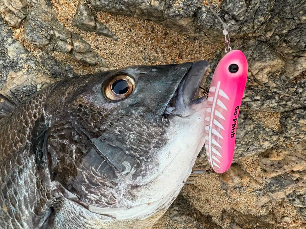 今年は猛暑の影響なのか例年にましてチヌの反応が悪く、今年の新色フランクサムも魚を掛けないままフックサークルが無駄に刻まれ、フックポイントも鈍っていく日々でした。