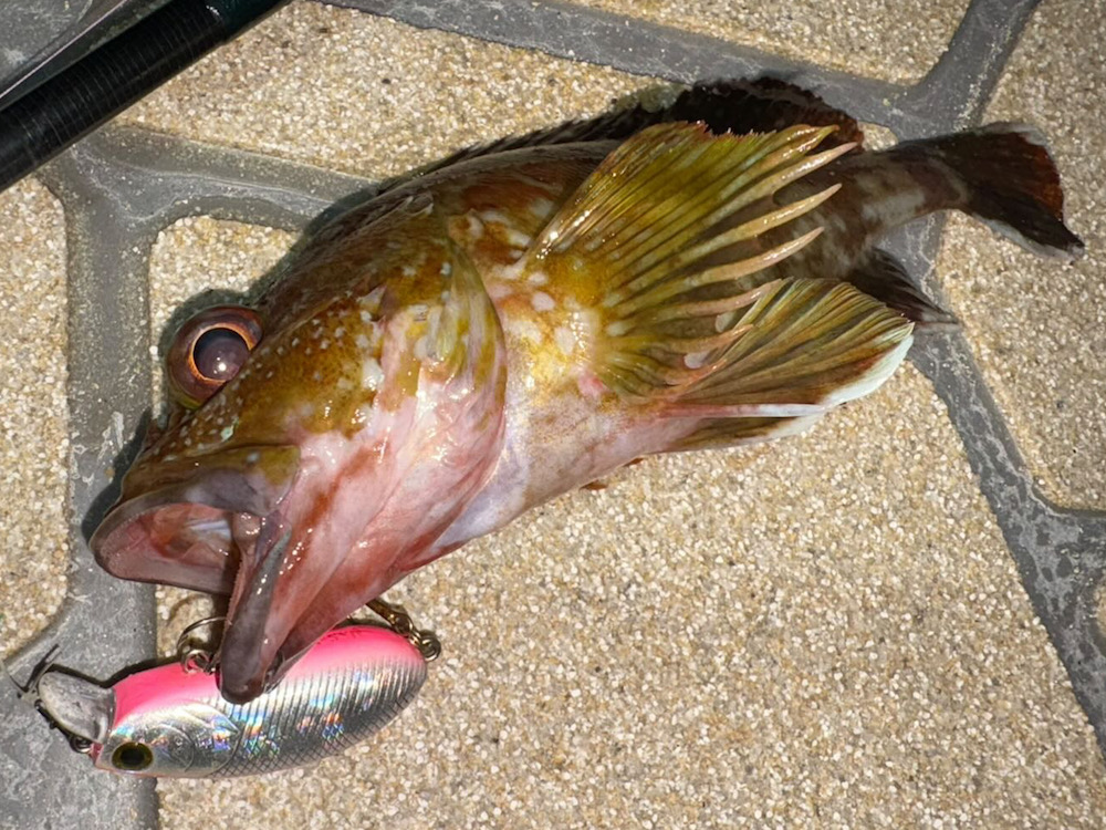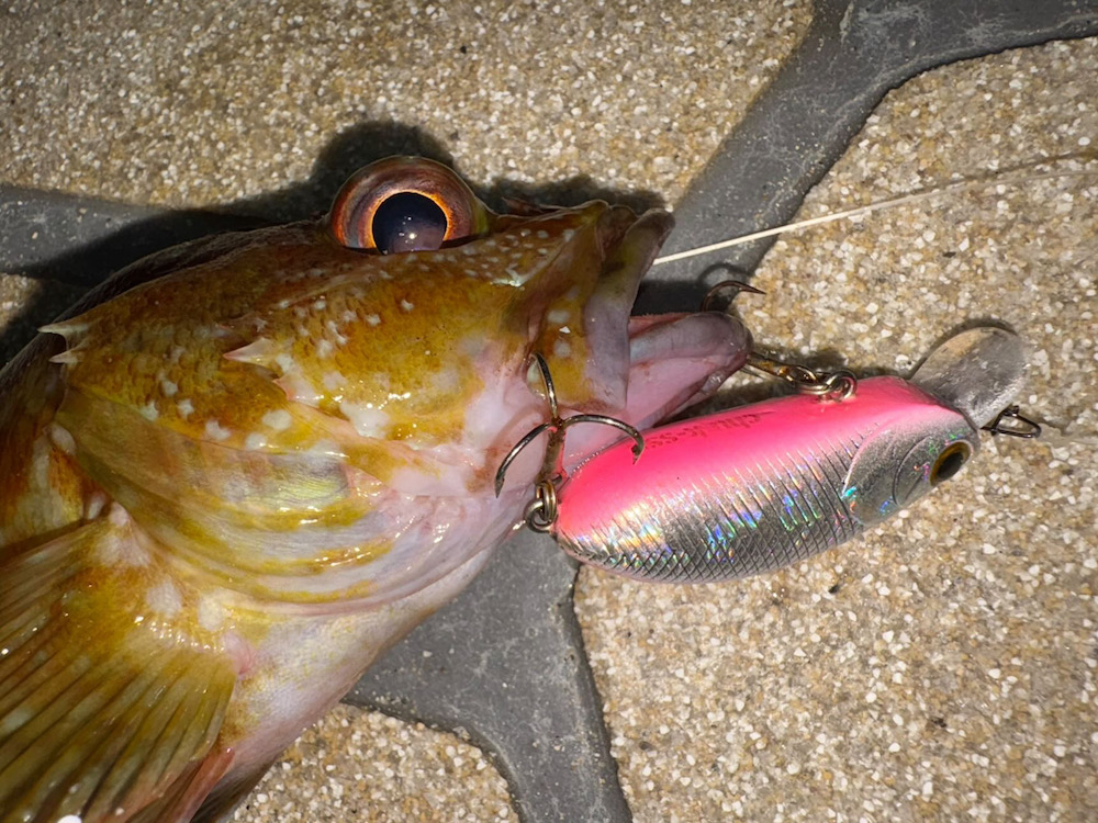 夏から9月にかけて海水温が高すぎるのかトップのチヌはさっぱりで、さらに雨も降らないのでスズキもチャンスがなく、例年であればツバスサイズが回遊してくるのにその気配もなし。というわけで、近所の海水浴場から突き出た石積みで根魚を狙います。ワームなら比較的簡単に釣れるのですが、ここはあえてプラグで。チャンクSSRで石積みから2メートルくらいの所へキャストし、石積みと平行に引いてきます。チャンクを回収したらどんどん横へ移動してどんどんキャストします。突然ルアーの挙動が消えてズンと重くなりました。急いでラインを巻き取っていペチペチと身を具ねらせながら20センチくらいのガシラがぶら下がってました。波風がない無風の日はチャンクSSRもローテしていこうと思いました。