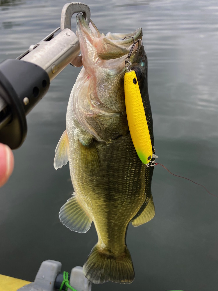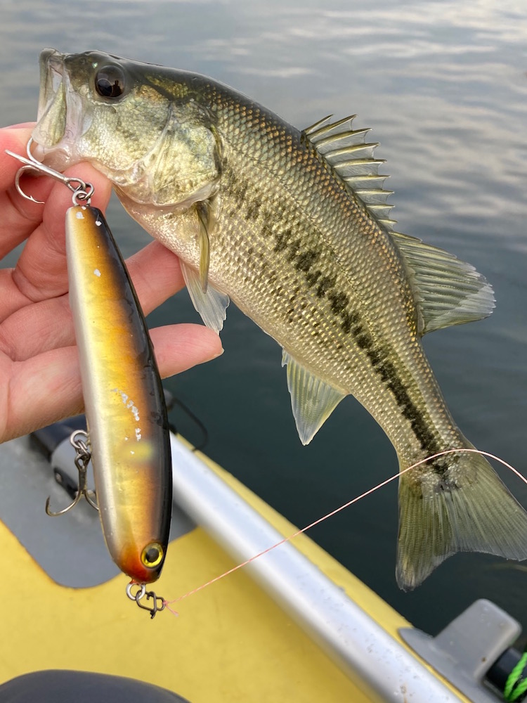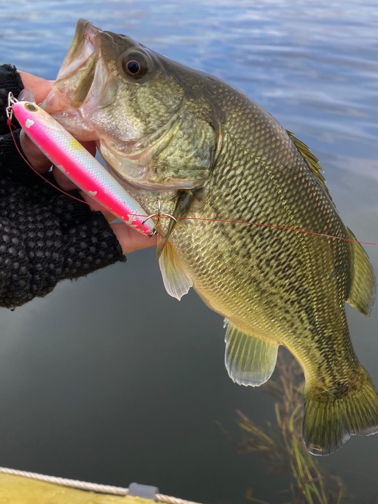 いつもお世話になっています。前回同様、秋の爆釣を狙ってきました。今日は朝から曇りでローライト期待が高まります。前回見つけていた良型ウヨウヨエリアに直行しました。ただ自然が相手、良型は居ませんでした。トップで反応はありますが、ノリが悪くなかなかフックアップしません。手を替え品を小バスを釣っていきます。写真には漏れていますが色々なルアーで釣っていきます。ダイビングサム90CW、ダイビングサム50、コトカス、コトカスミディアムFP、サミング70F&HI、サムポッパー等です。午後は少しだけサイズアップしました。次回は更なる爆釣を狙いたいと思います。ありがとうございました。