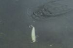 水面が波立っている場合には、泡を噛んだ強いダイビングアクションも効果があります。